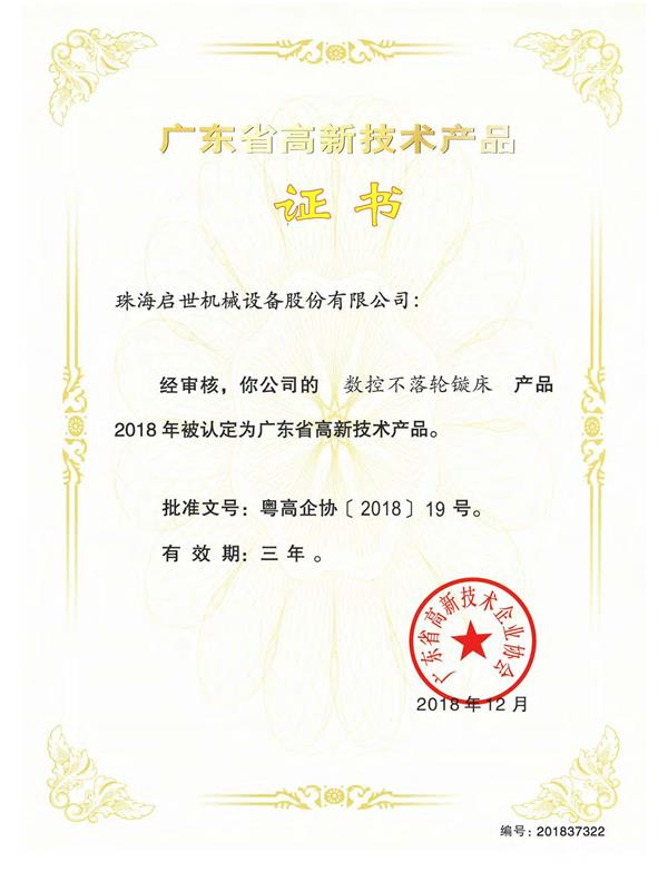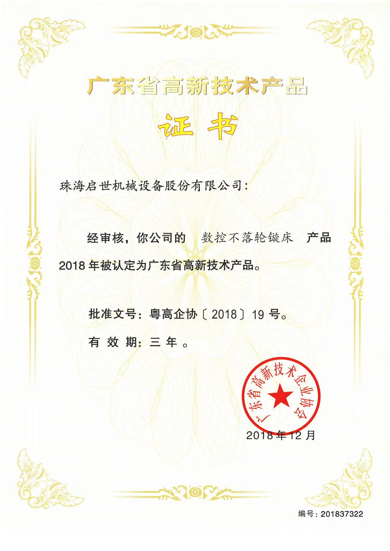 廣東省高新技術(shù)產(chǎn)品證書