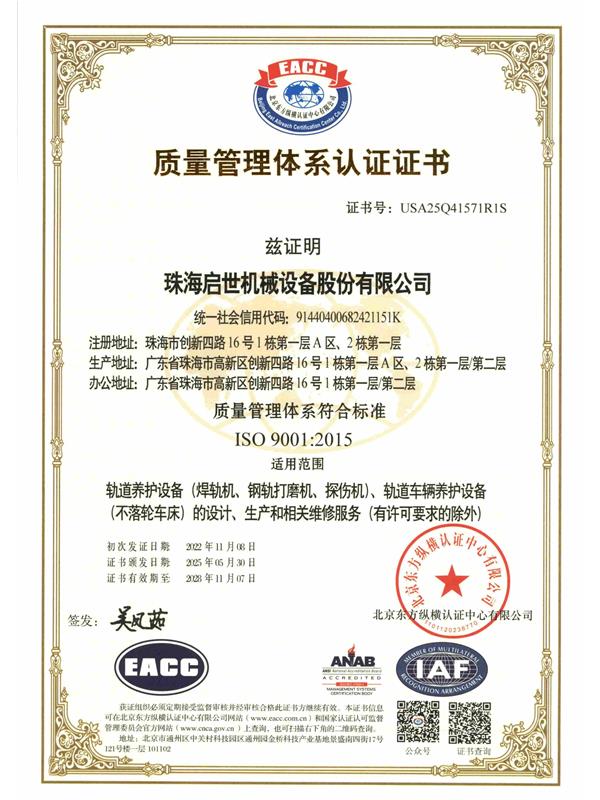 質(zhì)量管理體系認(rèn)證證書